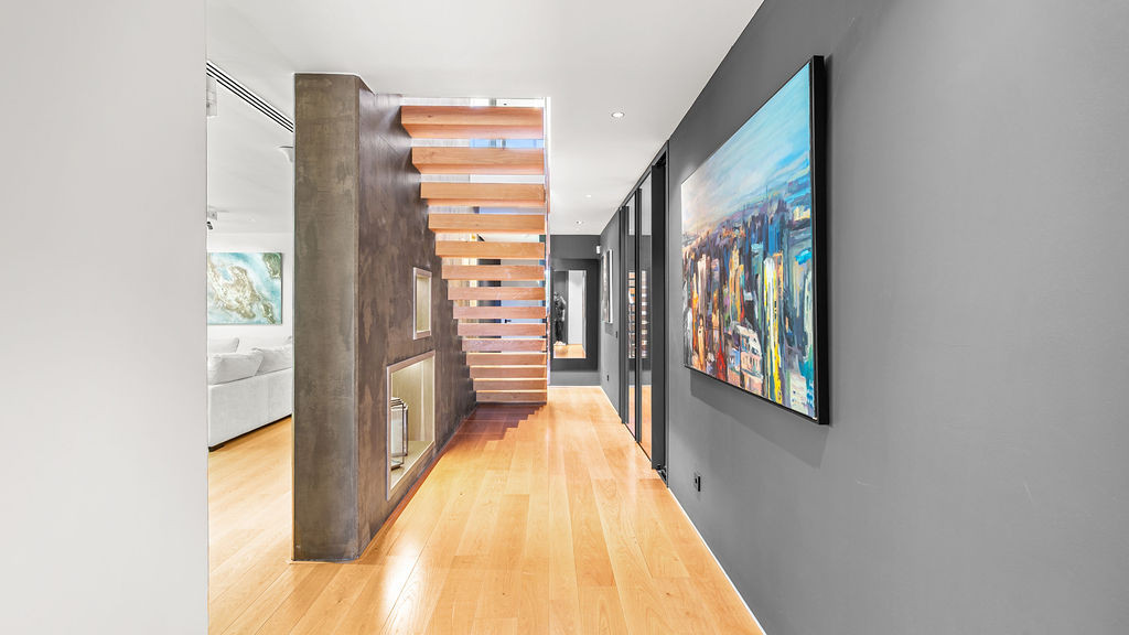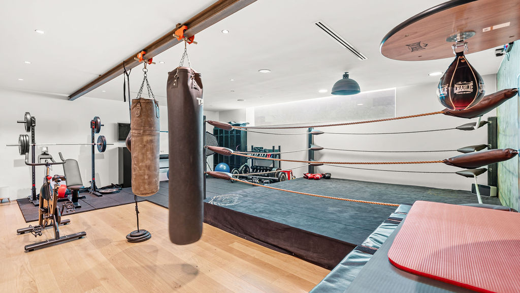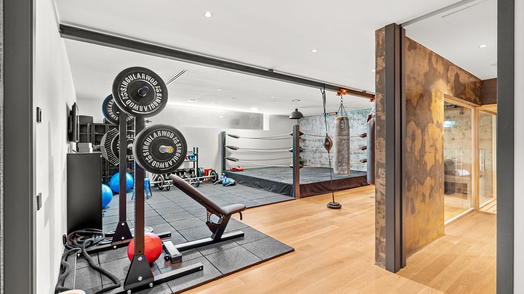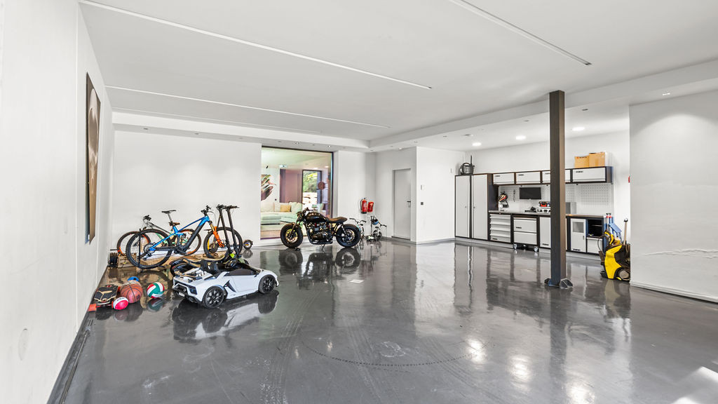 Car enthusiasts will appreciate the basement-level garage, separated by a glass wall from the cinema and training area. Another glass wall opens to the pool, filling the lower level with sunlight and energy.