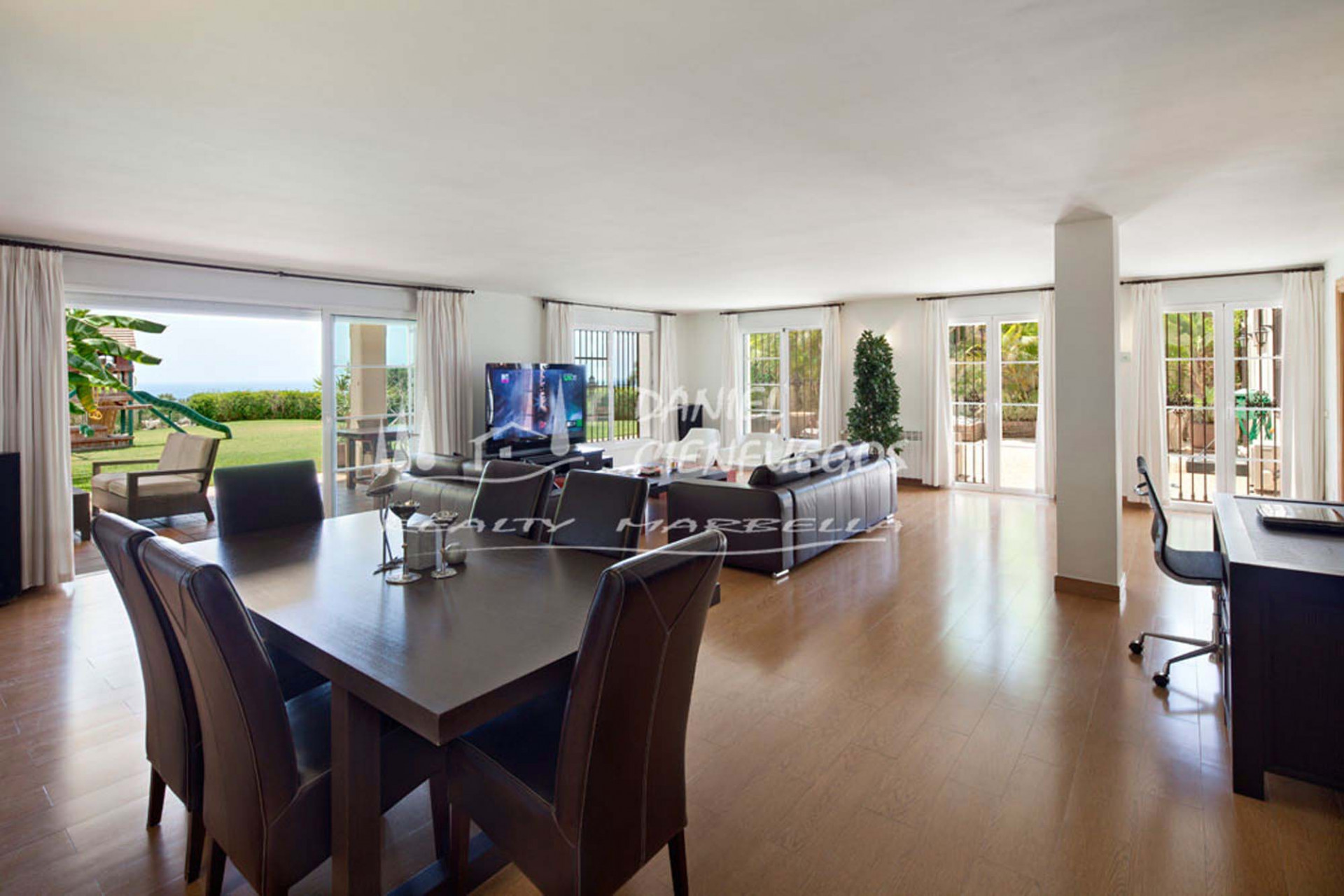 Finca located a few minutes from the beach just 5 km from Marbella with a plot of land 76,855 m2 Distributed on 3 levels, with 8 bedrooms, 7 bathrooms, large kitchen, large sunny terraces with panoramic views of the coast, large garage for 5 cars, large garden with swimming pool, horse stables, mini soccer field, 2 water wells, security cameras etc. Property with enormous potential.