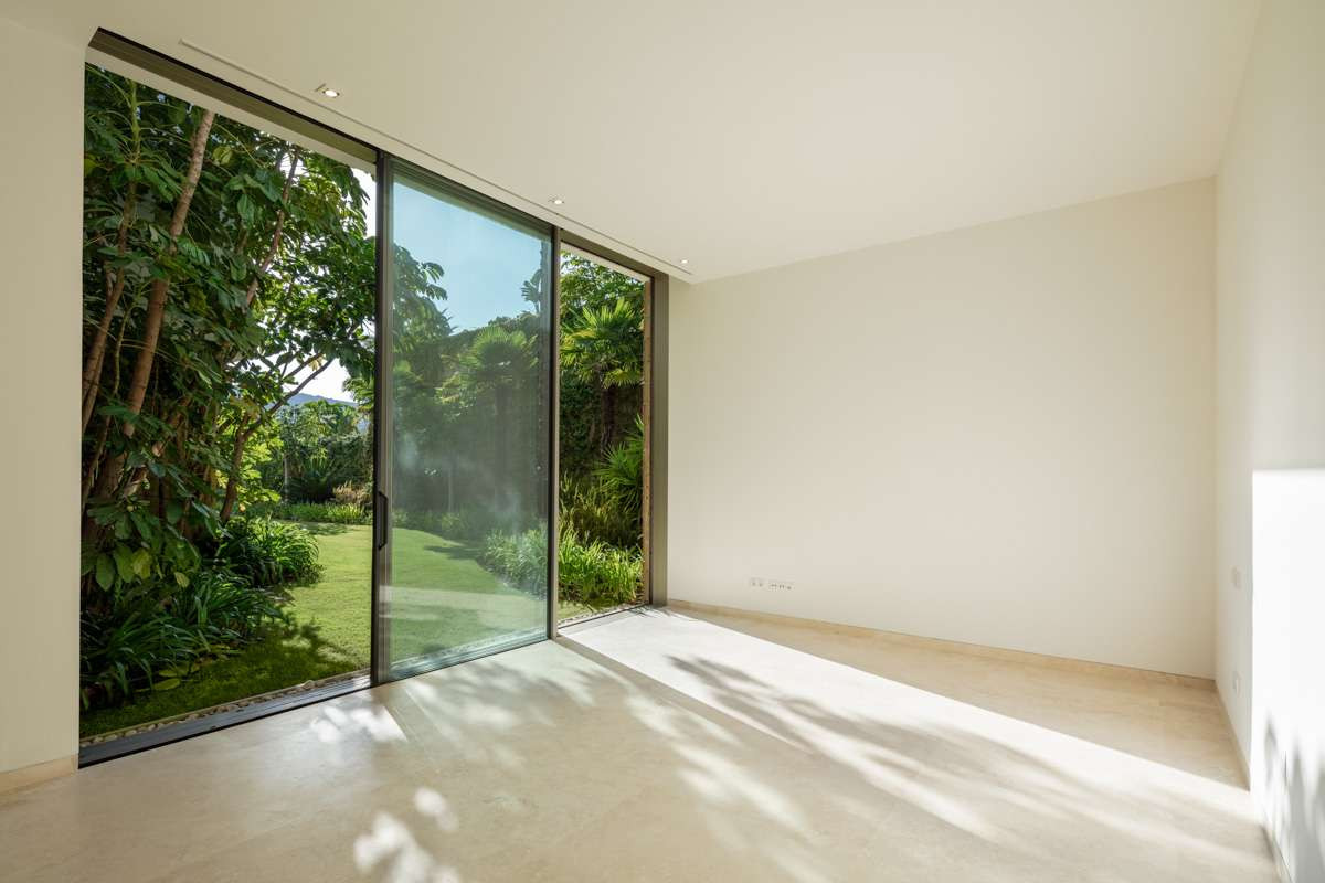 The landscaped gardens extend naturally from the interiors, forming a private green oasis that enhances the villa’s tranquil atmosphere. A serene swimming pool becomes the centerpiece of the outdoor space, surrounded by generous terraces designed for al fresco dining, relaxation, and entertaining throughout the year.